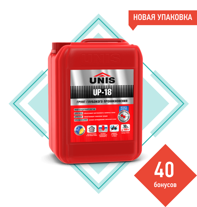 | UNIS Грунт глубокого проникновения 10л | UP-18 Грунт глубокого проникновения 10 л | 40 |