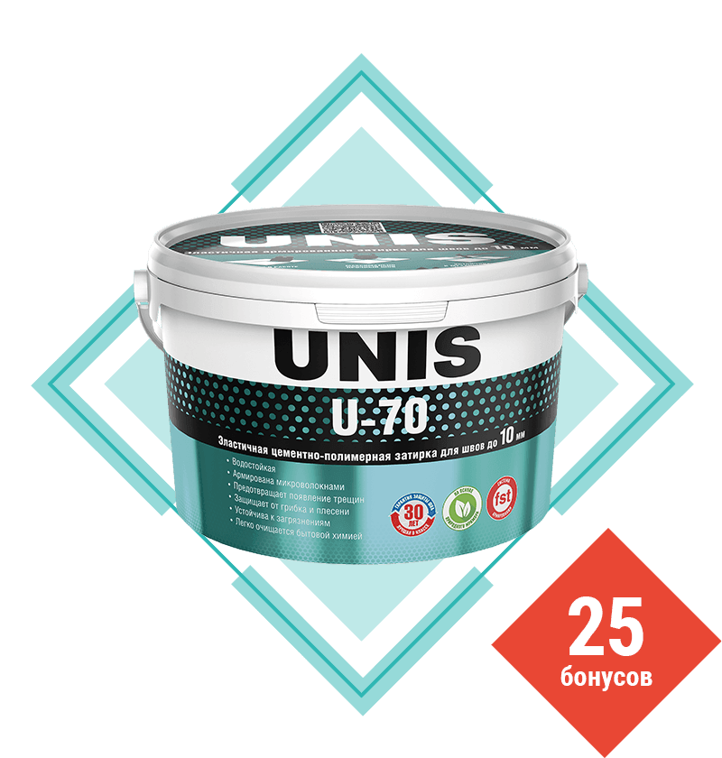| Затирка эластичная U-70, ведро, 2 кг (20 оттенков) | Затирка эластичная U-70, ведро, 2 кг (20 оттенков) | 25 |