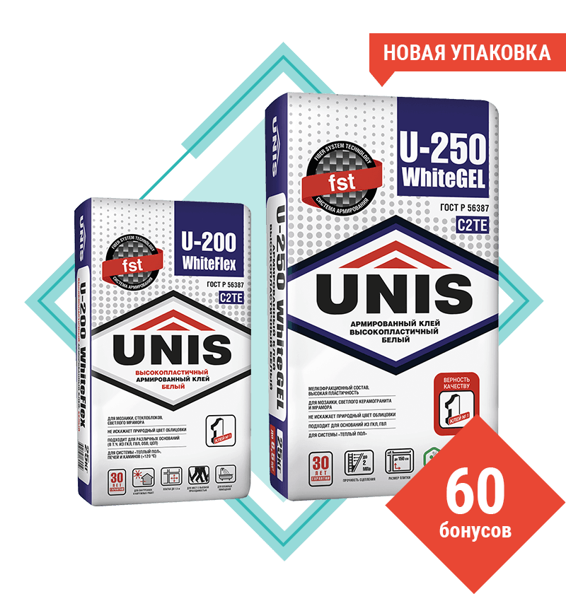 | WHITEFLEX U-200 клей высокопластичный, 25 кг | U-250 высокопластичный армированный белый клей, 25 кг | 60 |