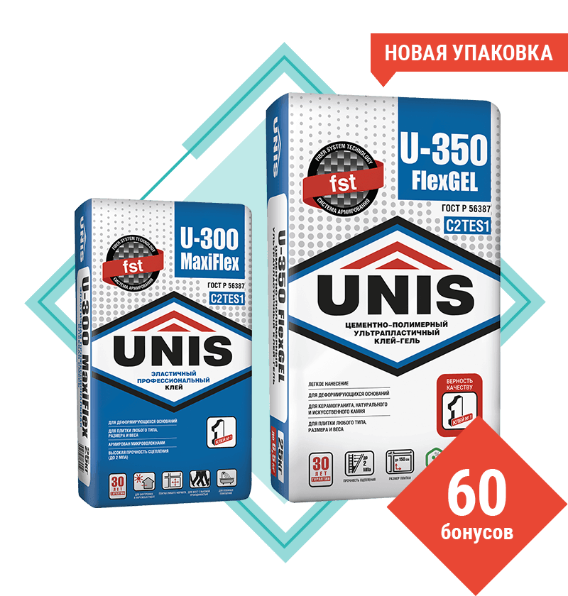 | U-300 MaxiFlex клей плиточный, 25 кг | U-350 PolimerGEL ультрапластичный цементно-полимерный клей, 25 кг | 60 |