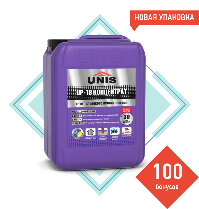 | UNIS Грунт глубокого проникновения концентрат 10л | UP-18 Грунт концентрат глубокого проникновения 10л | 100 |