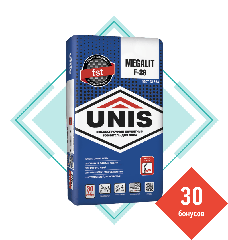 | MEGALIT F-36 высокопрочный цементный ровнитель для пола 25 кг | MEGALIT F-36 высокопрочный цементный ровнитель для пола 25 кг | 30 |
